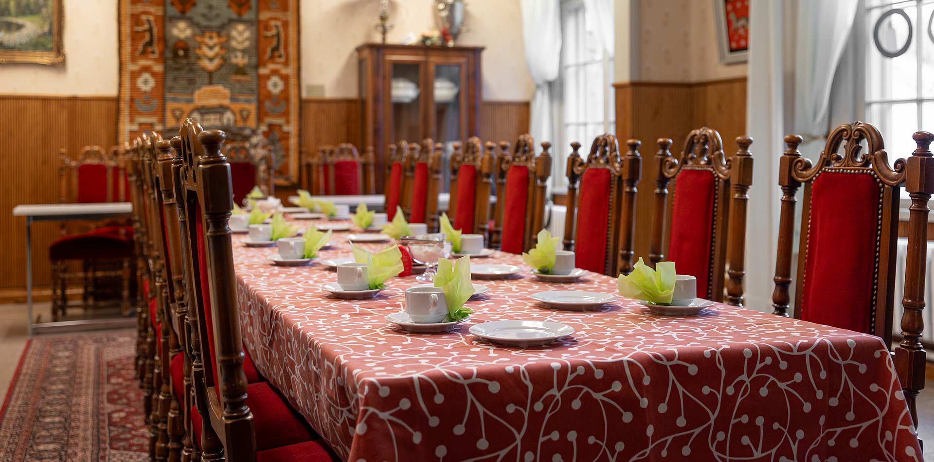 Juhlien tarjoilut voidaan toteuttaa joustavasti Itä-Karjalan Kansanopiston catering-palvelun kautta ja juhlamenu voidaan suunnitella toiveidesi mukaan. Huolehdimme myös juhlan käytännön järjestelyistä, jotta sinä voit keskittyä nauttimaan juhlapäivästäsi.