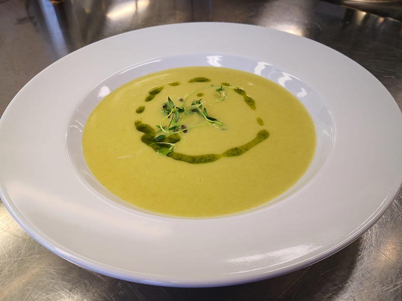 Noutopöytälounas sisältää salaattipöydän, keiton, lämpimät ruoat, jälkiruoan, leivät ja levitteet. Ruokajuomina maito, piimä ja vesi. Lisäksi kahvia ja haudutettua teetä.